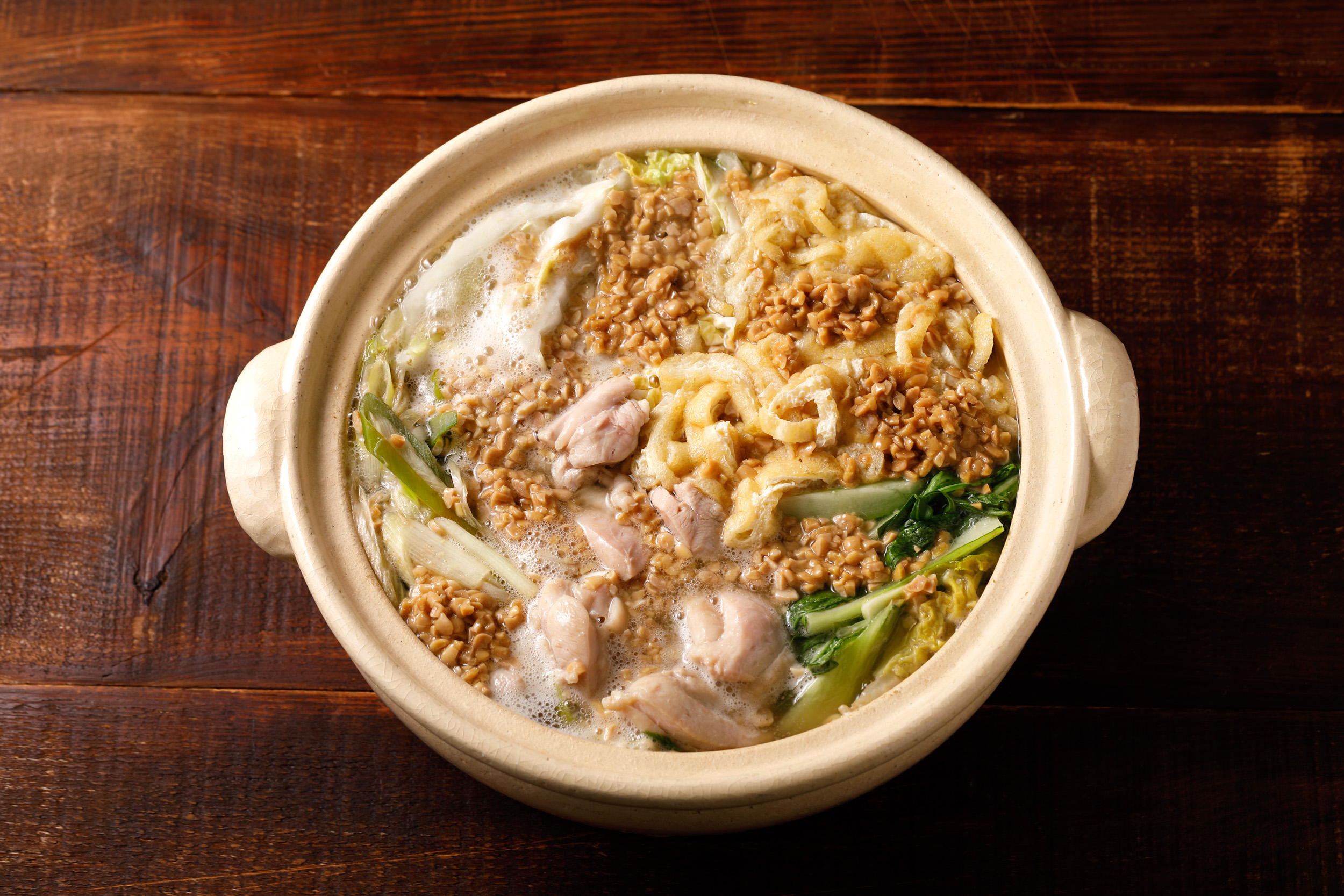 納豆鍋というと、「え!納豆を鍋にするの!?」とすごく驚かれます(笑)だしといっしょに炊くと、納豆独特のにおいが消えて旨味だけが残るので、とても美味しくなるんですよ。少しだけとろみがつくのもポイントです。
